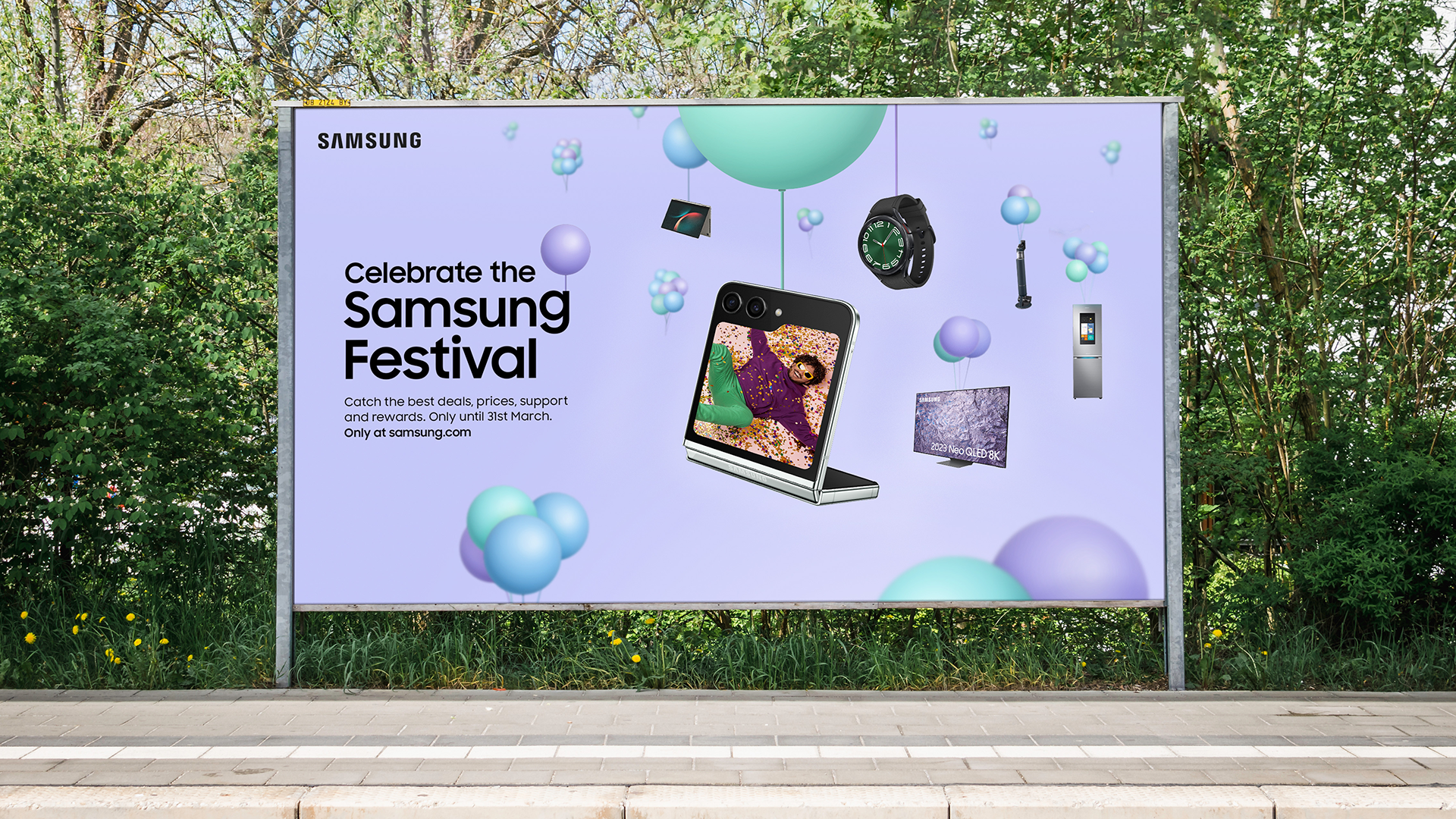 Identity and key visual for Samsung Festival, the Samsung equivalent of Black Friday. The campaign design needed enough flex that products could easily be changed.